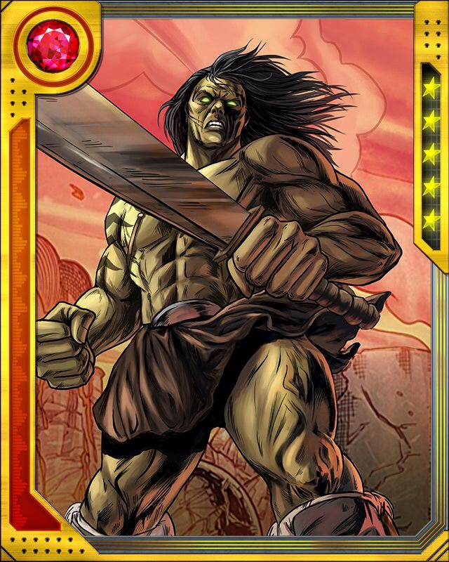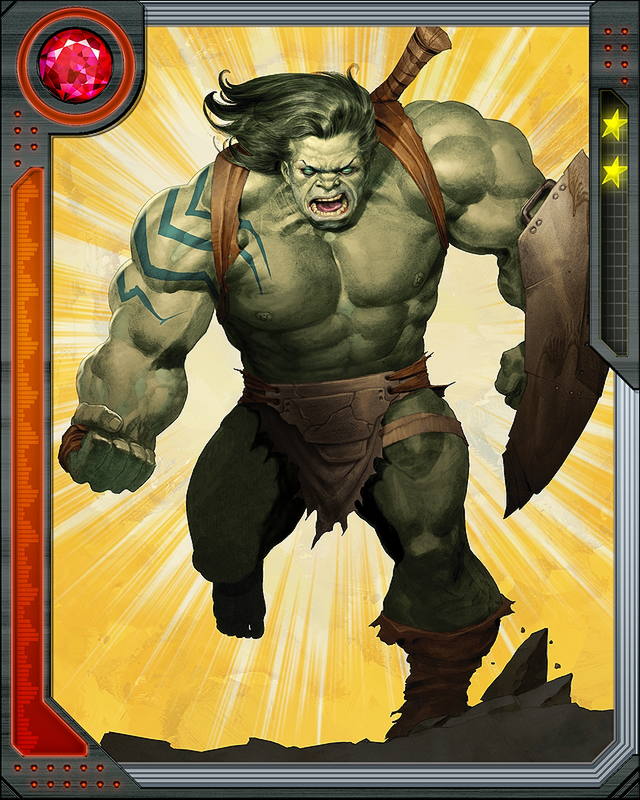 Skaar, the warlord of the gamma horde created for the mobile game marvel realm of champions.